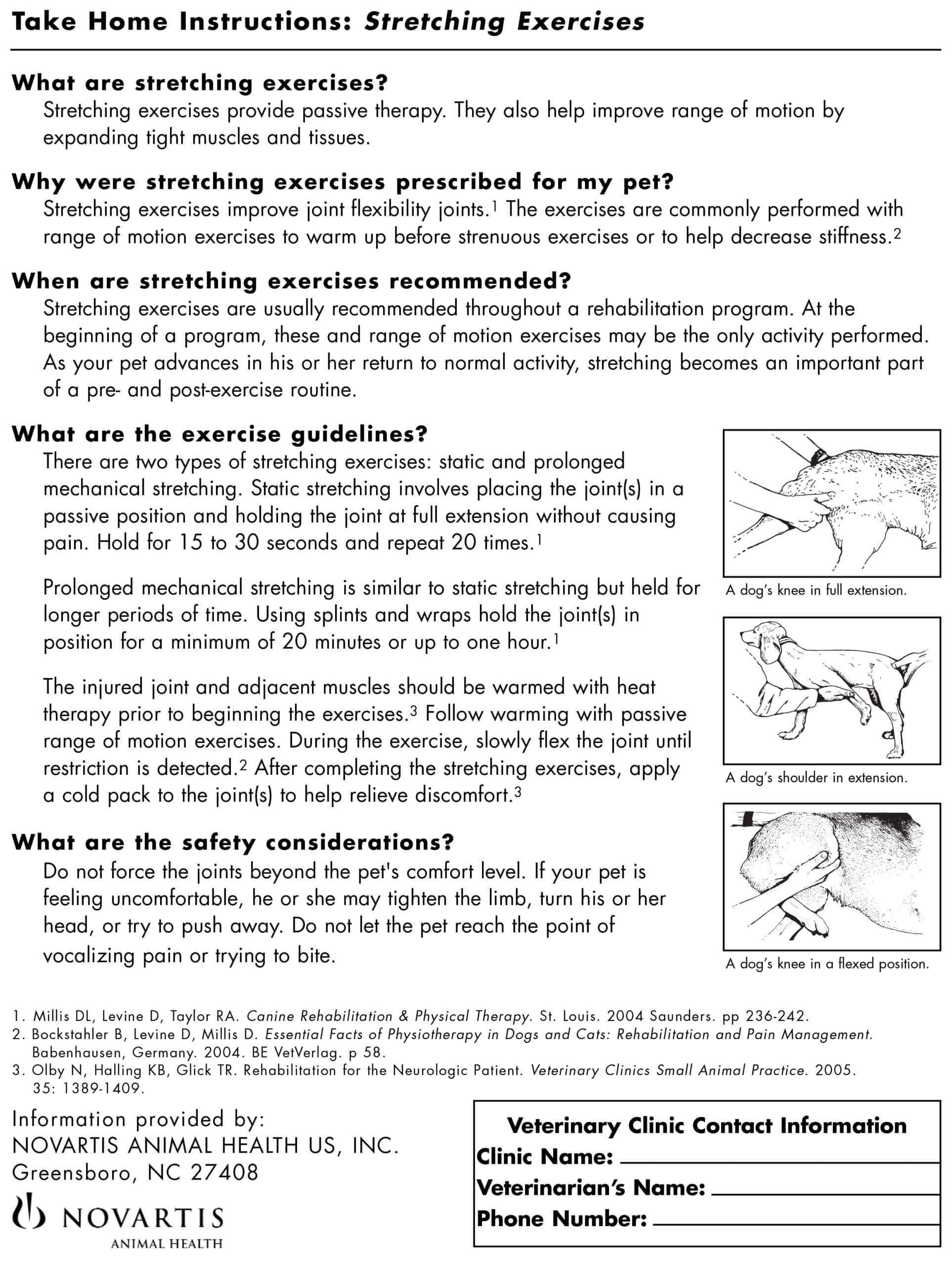 These videos and handouts will aid you with visuals about the exercises your veterinarian may prescribe for your pet.